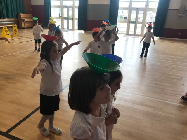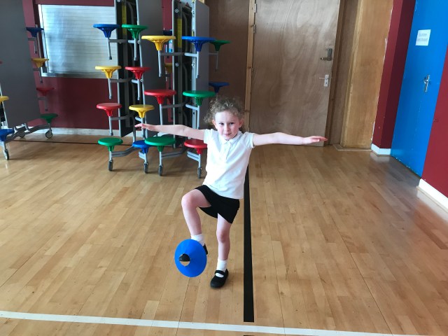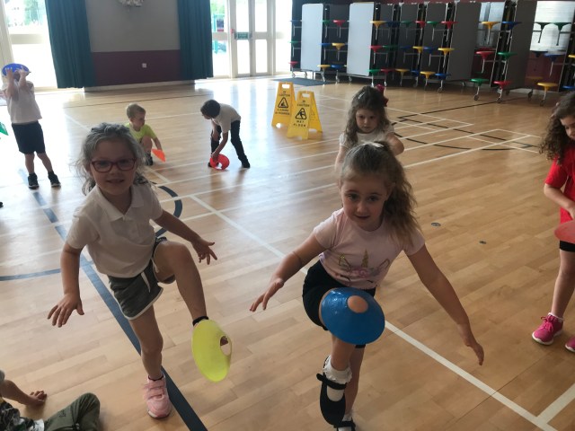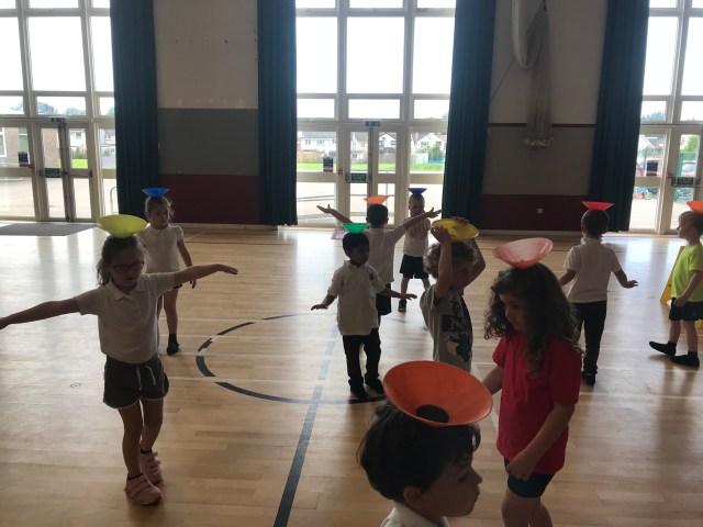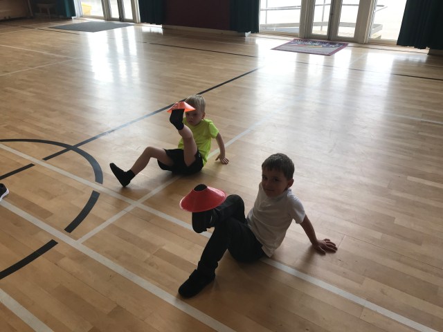 We were developing our balancing skills in gym on Wednesday. We had a go at balancing cones on different parts of our bodies. Lots of concentration was needed for this!