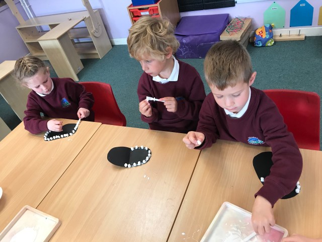 We especially enjoyed writing the sounds in the air, on the carpet and on a partners back this week.