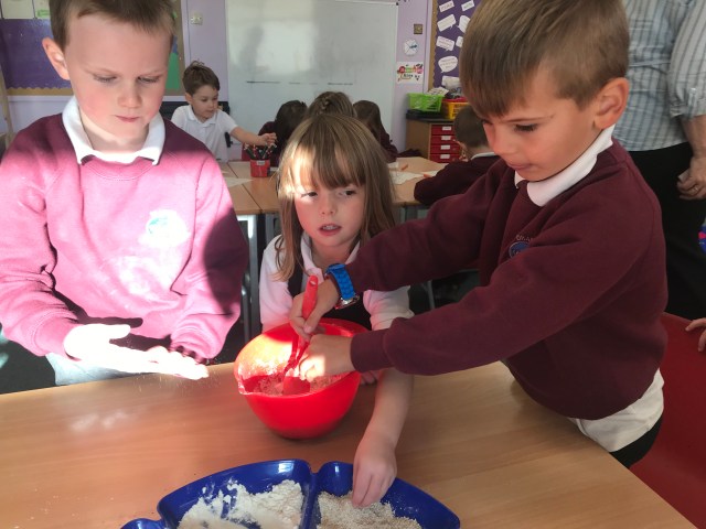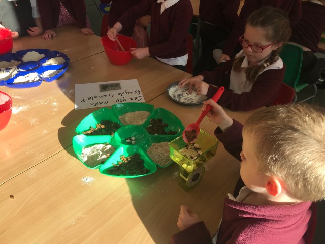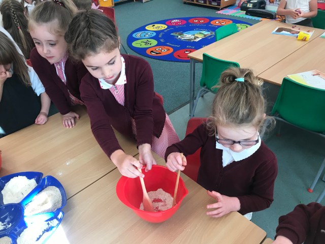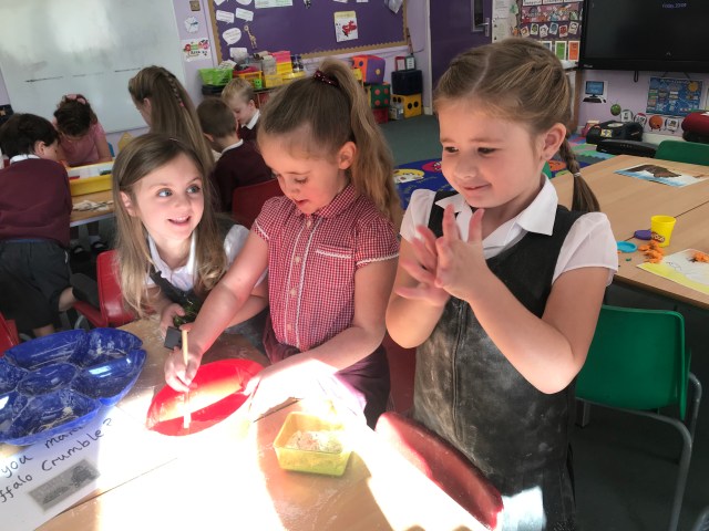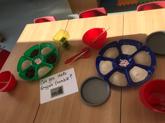 On Friday we had a go at making Gruffalo crumble, building a logpile house and creating some of the characters using play dough.