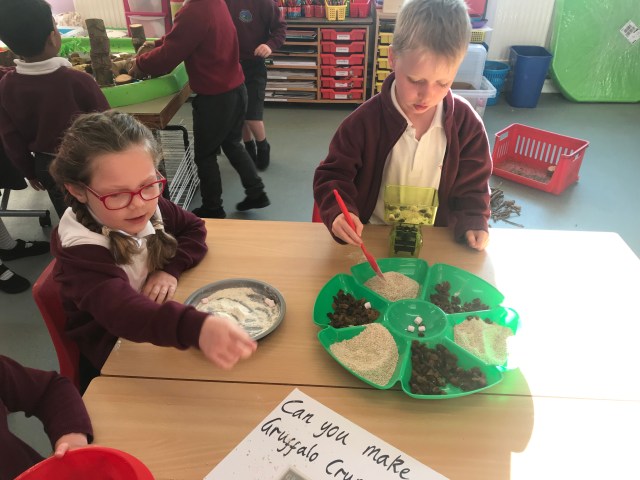 As part of our topic this term we have spent the last two weeks focusing on The Gruffalo. We have been retelling the story, sequencing the main events, developing our use of descriptive language to describe the different characters and even learning the gruffalo song in Makaton.
