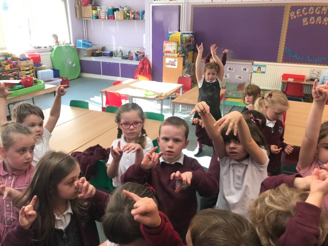 Here we are doing the gruffalo song in Makaton, this required lots of concentration to sing and sign at the same time.