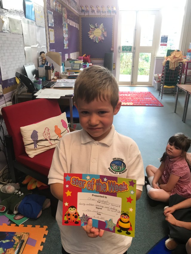 In P1 this week our ๐ is Oliver! Well done Oliver for excellent teamwork during our outdoor learning session and baking activity this week. What super team skills ๐
