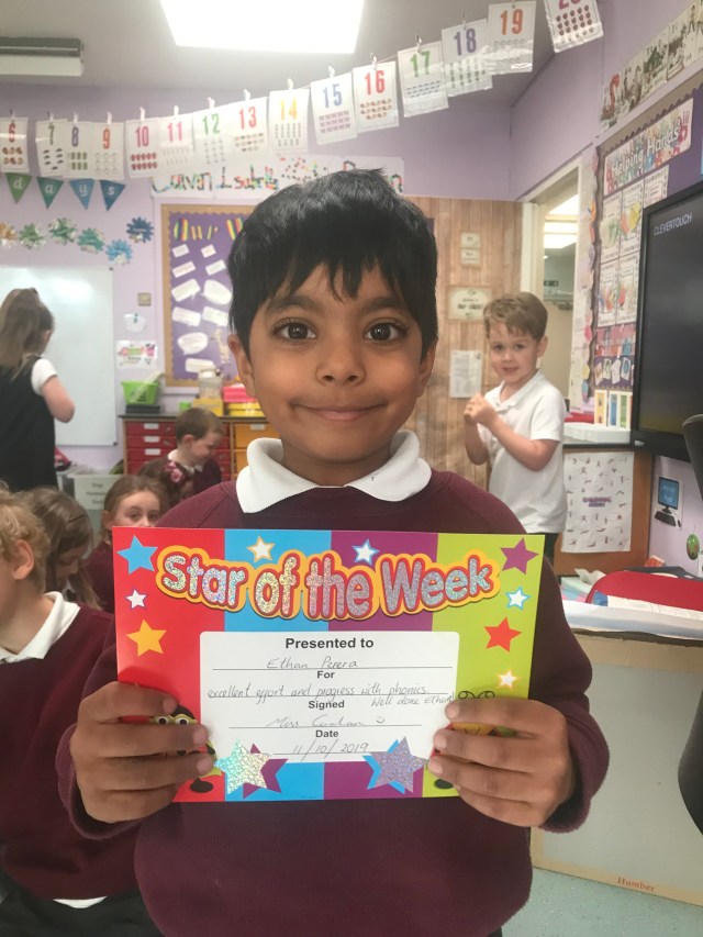 Well done Ethan! This week’s ๐STAR๐ for excellent effort and great progress with phonics. Keep up the fantastic work Ethan ๐๐