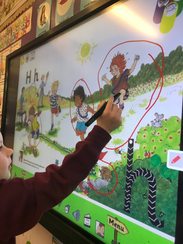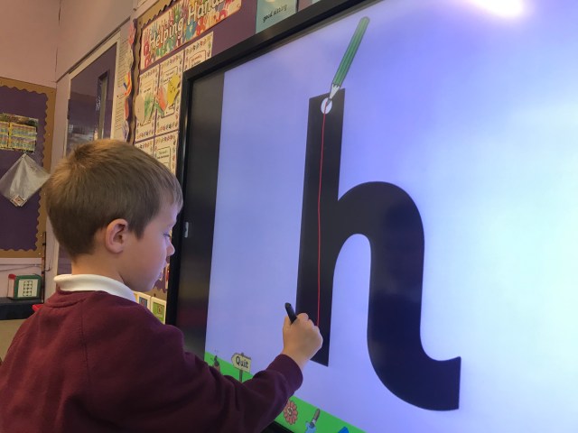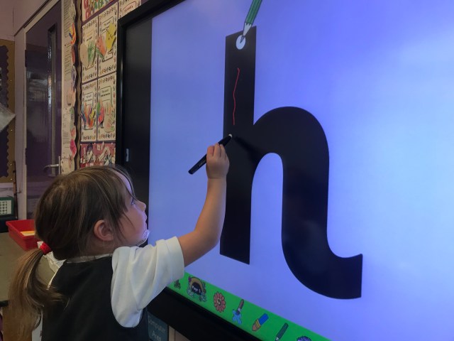 We found lots of h words in our story picture and then practised the formation.