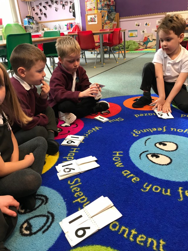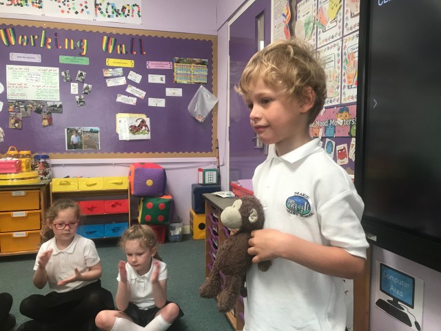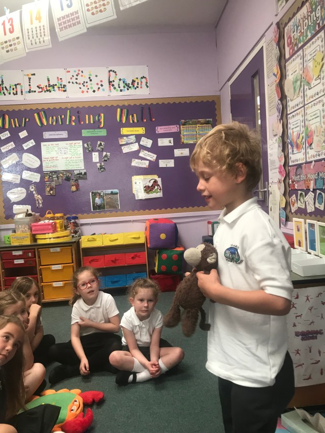 We have been doing lots of practising to recognise, order and sequence numbers this week. We had a little help from the ‘more than monkey’ to identify numbers after/one more than. We enjoyed using number fans to practise this.