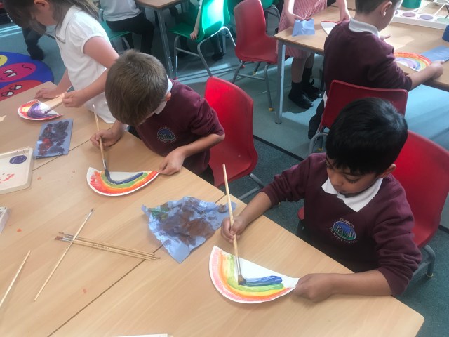 The sound r got us talking about rainbows and on Friday we talked about the different colours of the rainbow and made some of our own. I can’t wait to put these up on display, they will certainly brighten up our classroom.