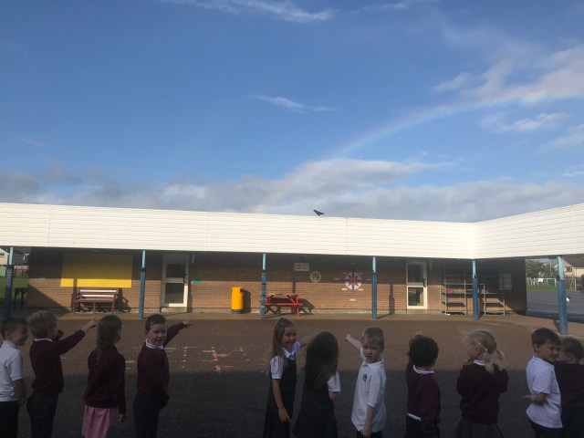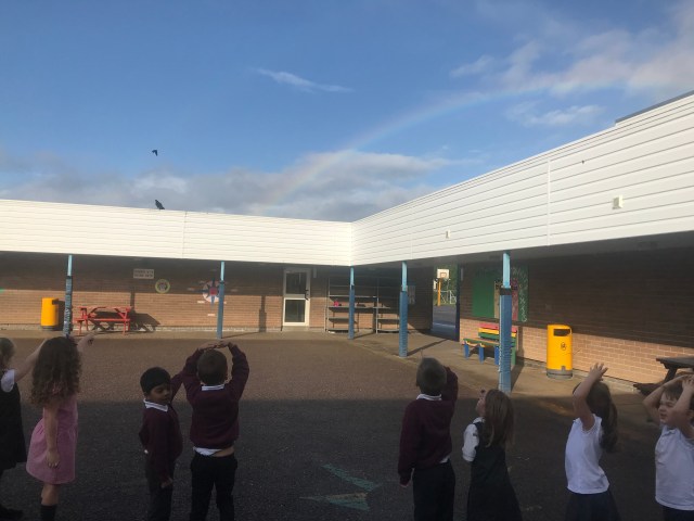 Then, after all our talk about rainbows we spotted one on our way to Assembly!