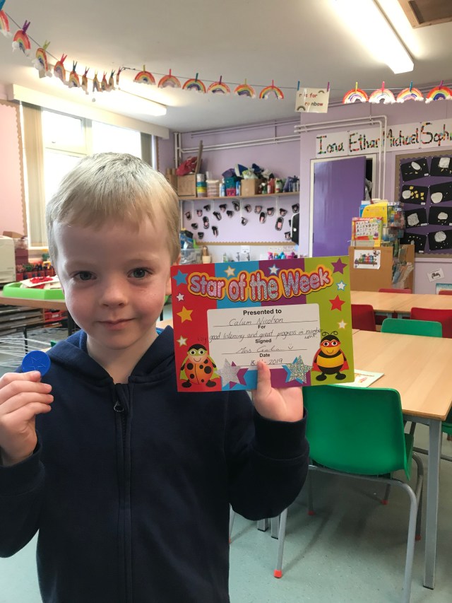 Yay, well done Calum! Our Star of the week today for hard work and good progress in maths. Keep up the great work Calum ๐ Oh and his first house token too for his determination!