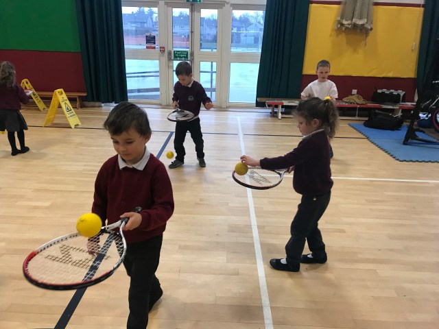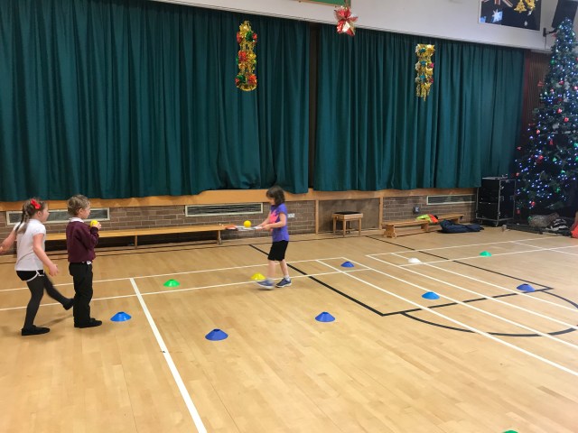 We also worked on balancing the ball on the racket, remembering to hold the racket correctly.