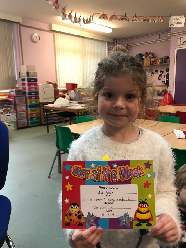 Another week, another star! (Well actually we have 25 of them in P1!) This week Aria received her star award for fantastic teamwork. Great to see evidence of another of our school values in P1 ππ Well done Aria keep up the great work!