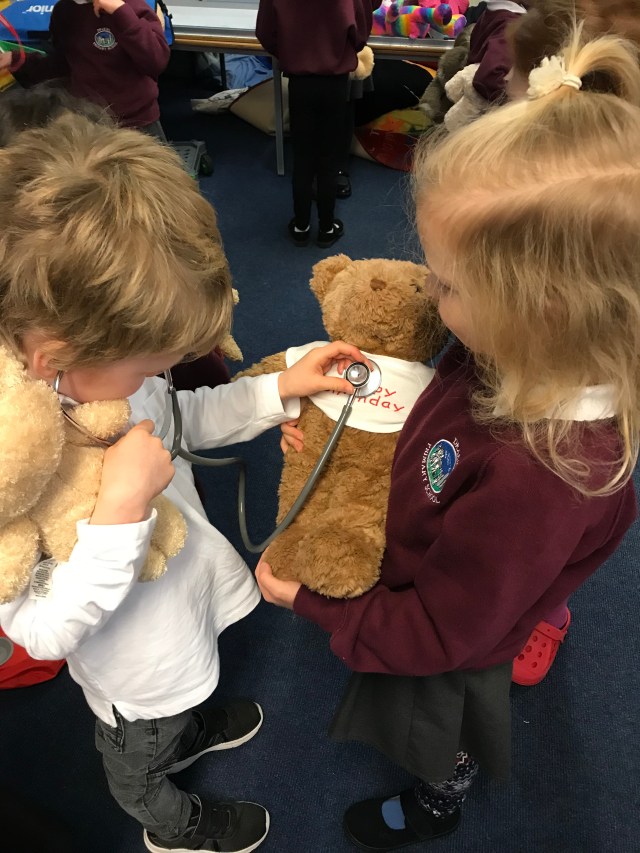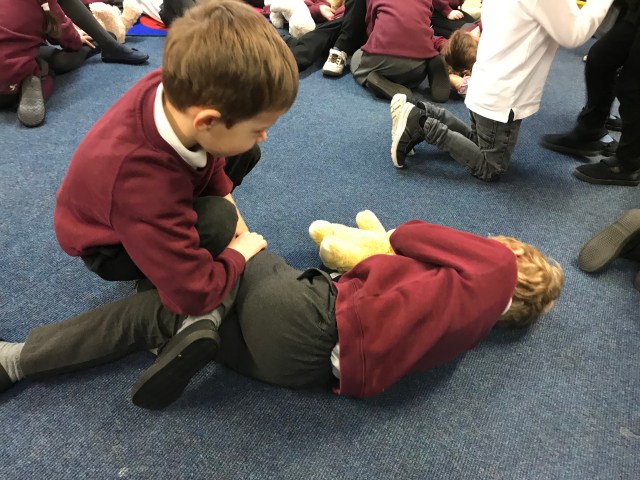 What a busy Tuesday we’ve had in P1 today! This morning we had our final parent visitor to hear all about his job. We practised CPR on our teddies, learnt how to put someone in the recovery position and had lots of good questions to ask.