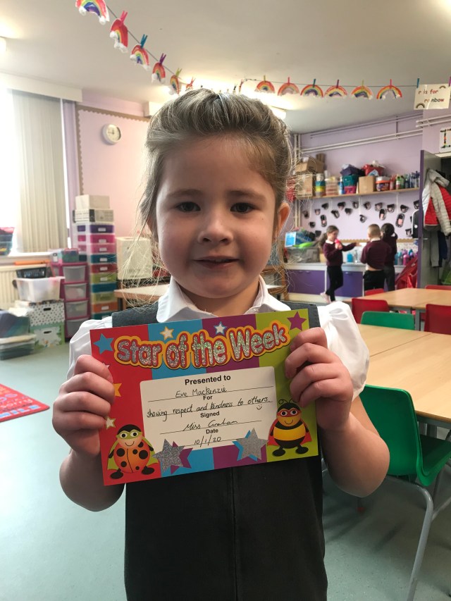 We had our first assembly of the new term today and our new star of the week is Eve for showing respect and kindness to others. Well done Eve, a great example of following the Drakies school values! 😊👍
