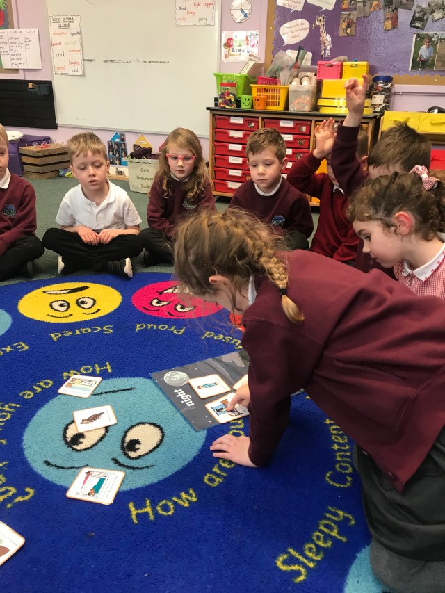 This week we have been consolidating the group of sounds: j, ai, oa, ee and or. These are quite tricky ones so remember so please keep practising them at home. We had lots of fun in class being sounds detectives and going on a sound hunt – we had look for the sounds and then read the ones that we saw.