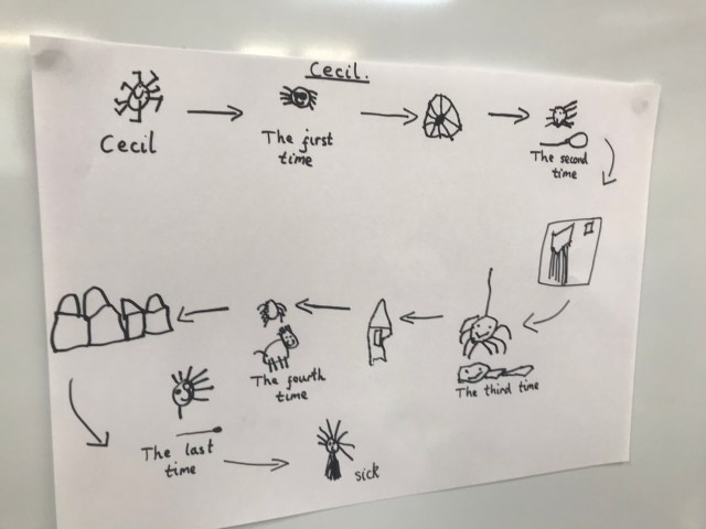 We continued to work on our text Cecil the Spider and this week created a Story Map as a class