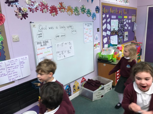 On Friday we had a go at writing a sentence independently. We had to include a describing word for Cecil and remember a capital letter, finger spaces and a full stop. A lot to remember but no problem for us! I was delighted with the standard of all the writing and can’t wait to get some up on display on our new writing wall. 😀✏️📝👍