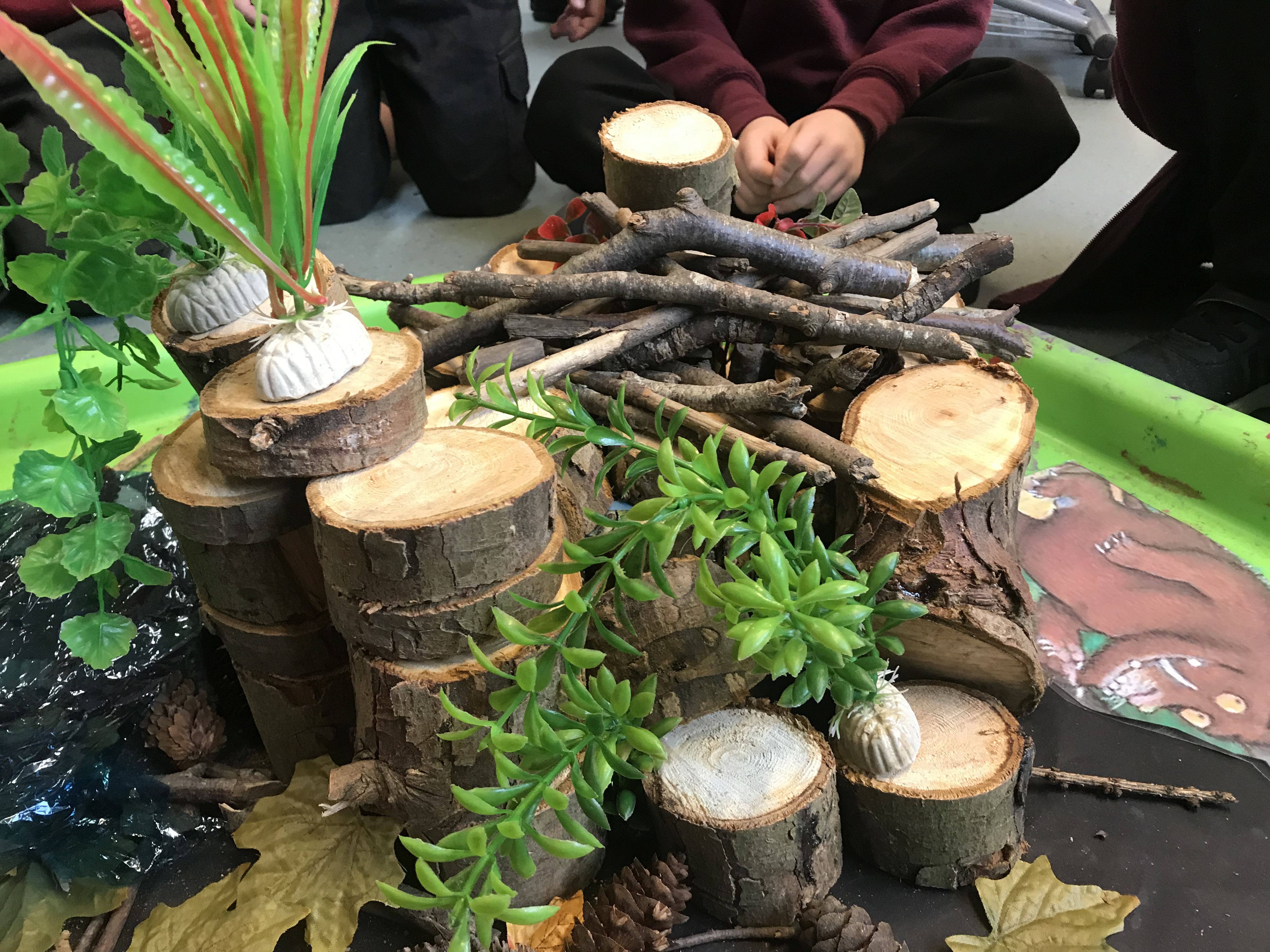 We started having a think about animal habitats at the start of the week after reading The Gruffalo’s Child and yesterday we were lucky to have a visit from the ladies from Aigas Field Centre to do some outdoor learning about animal hibernation and camouflage.
