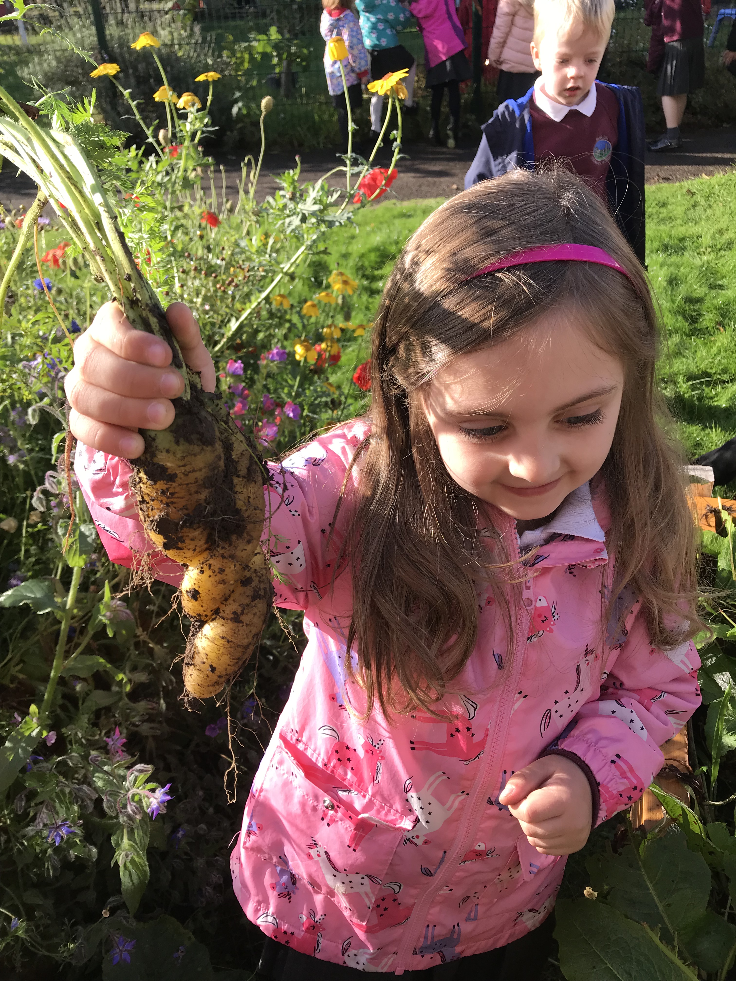 One of the new sounds we have been learning this week is C. So what better time to harvest the rainbow carrot garden in our school grounds. On Monday we all helped to pick the carrots, they were all different colours, shapes and sizes.