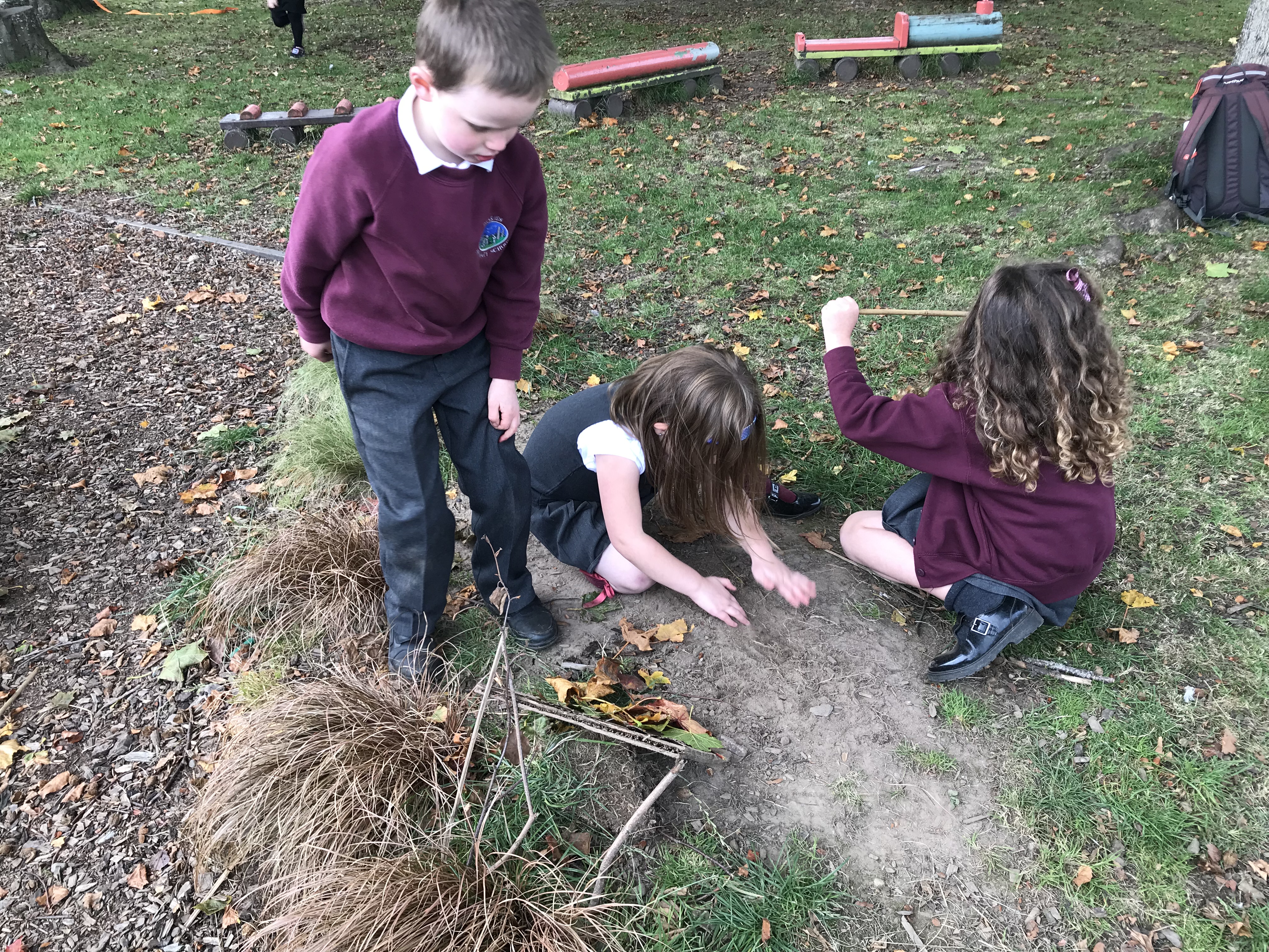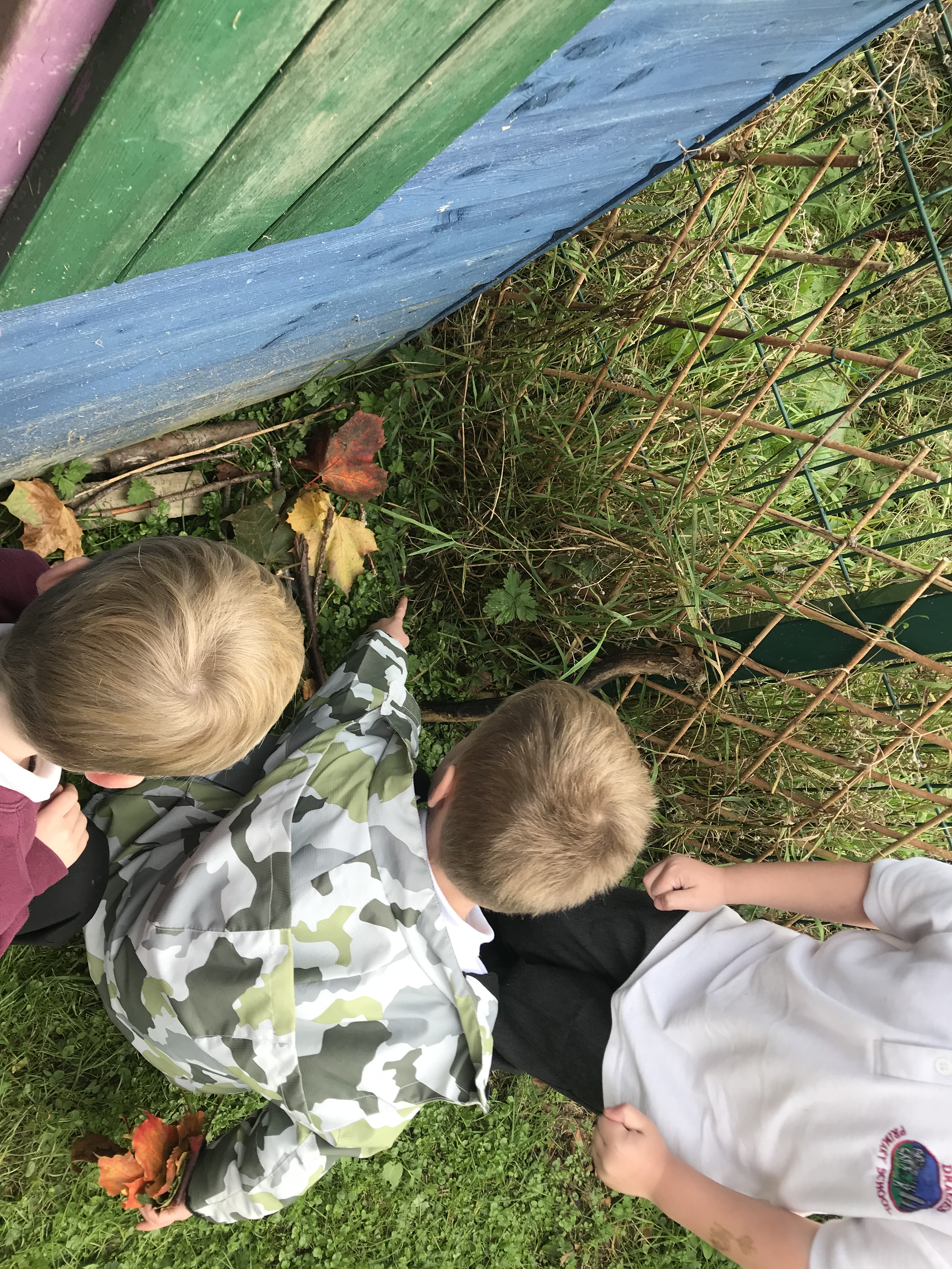 We then talked about the places some animals like to live and worked in teams to make hedgehog homes. These had to be sheltered and warm for our Drakies hedgehogs to keep cosy in, so we needed to think carefully about where we would build the homes and what we would use. The children worked very well in their groups and made some super cosy looking homes out of leaves, sticks, grass and stones.