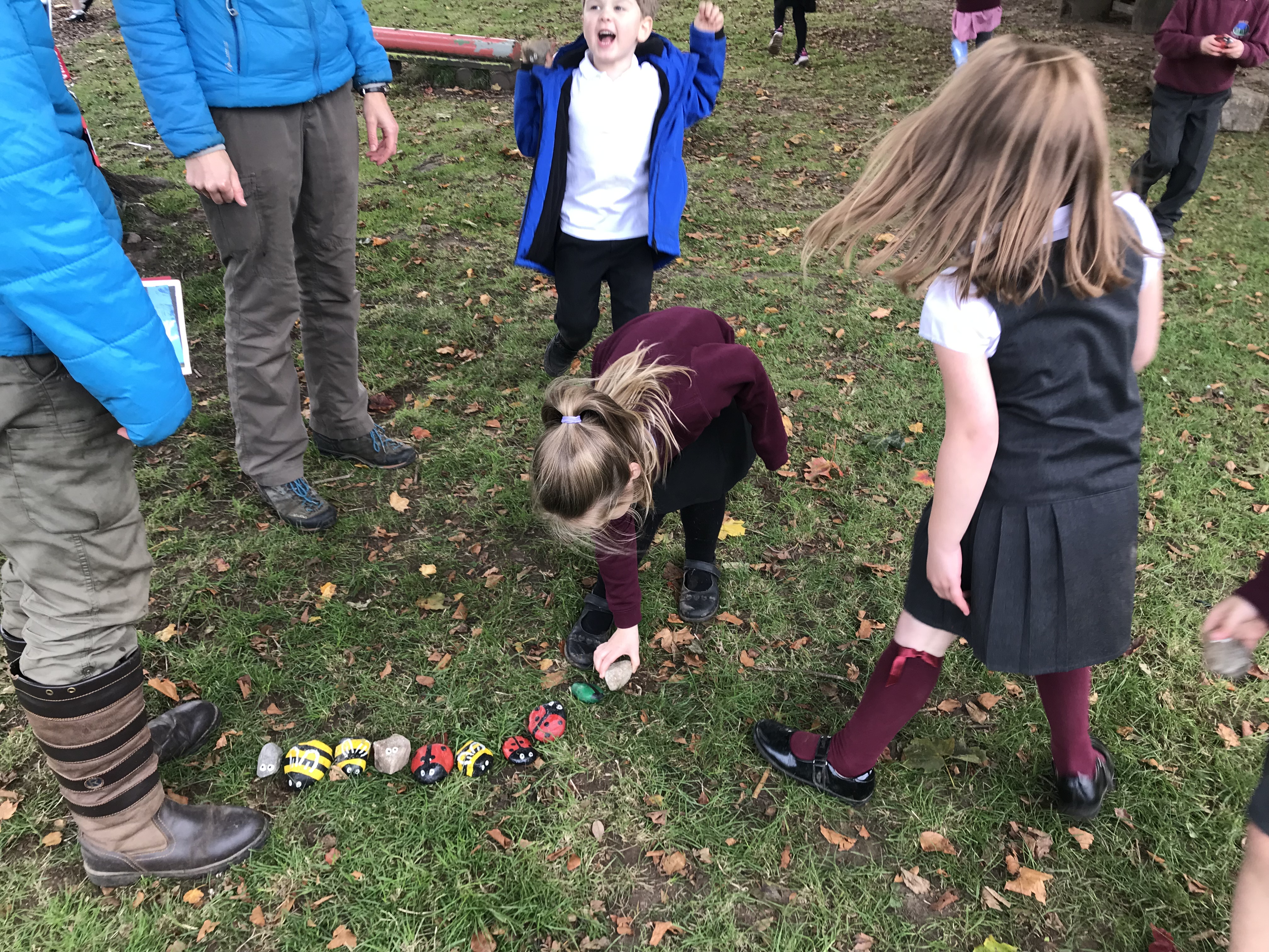 To finish off we went on a ‘pebble animal’ search – some of these were bright colours and easy to find whereas some were camouflaged and not so easy to spot!