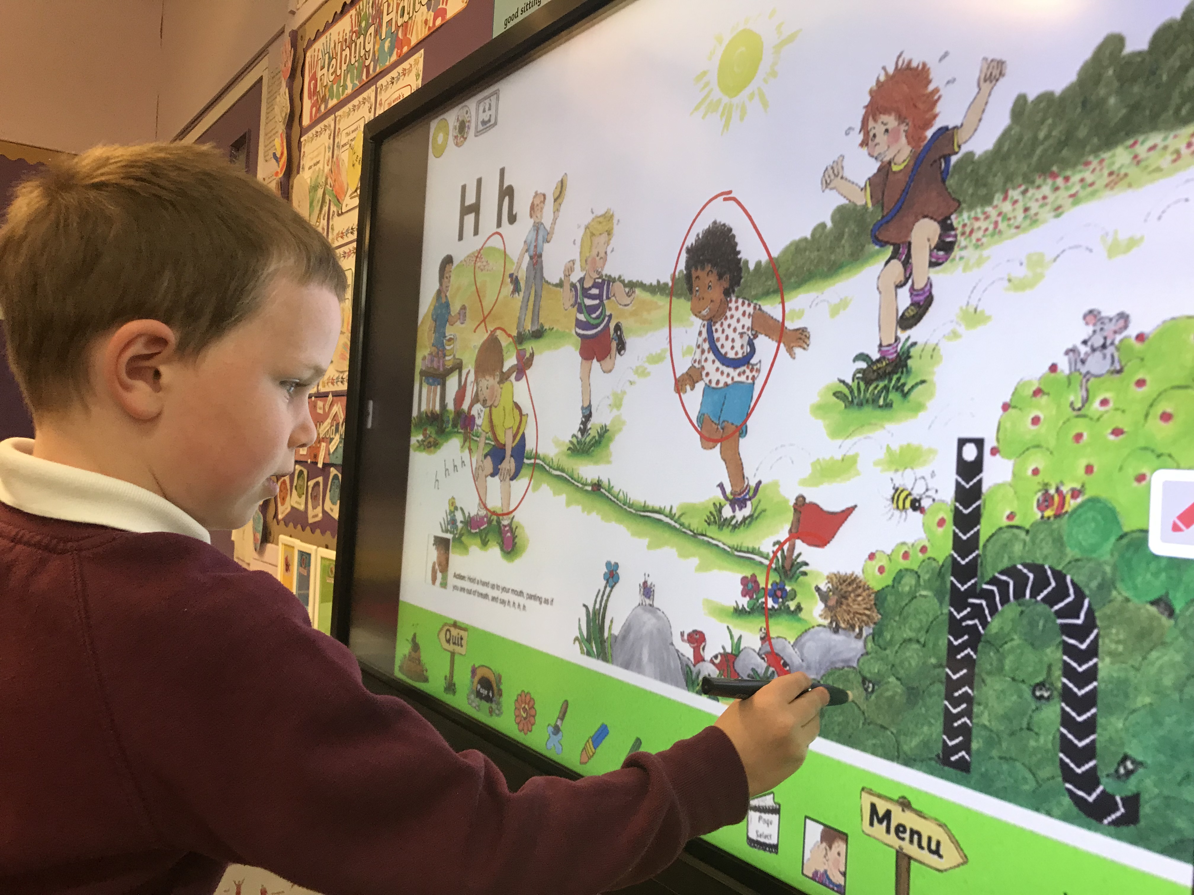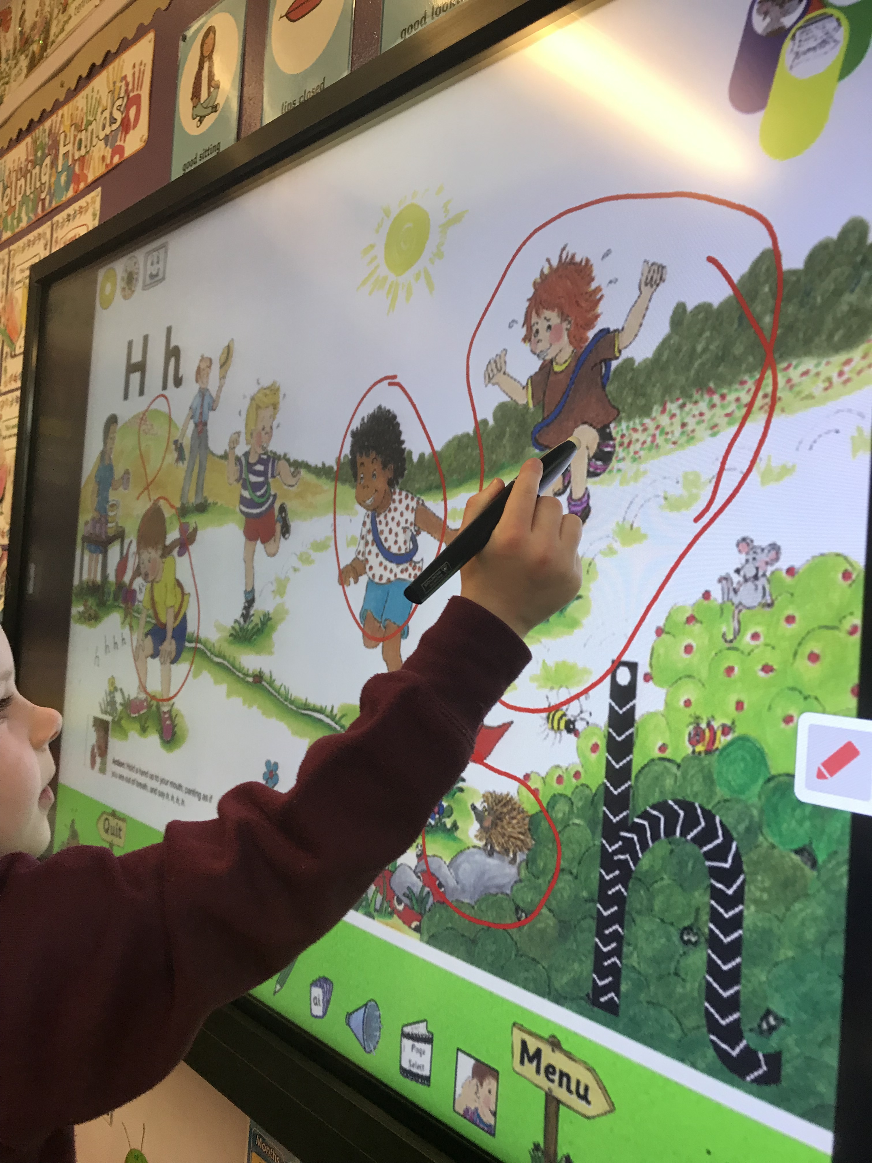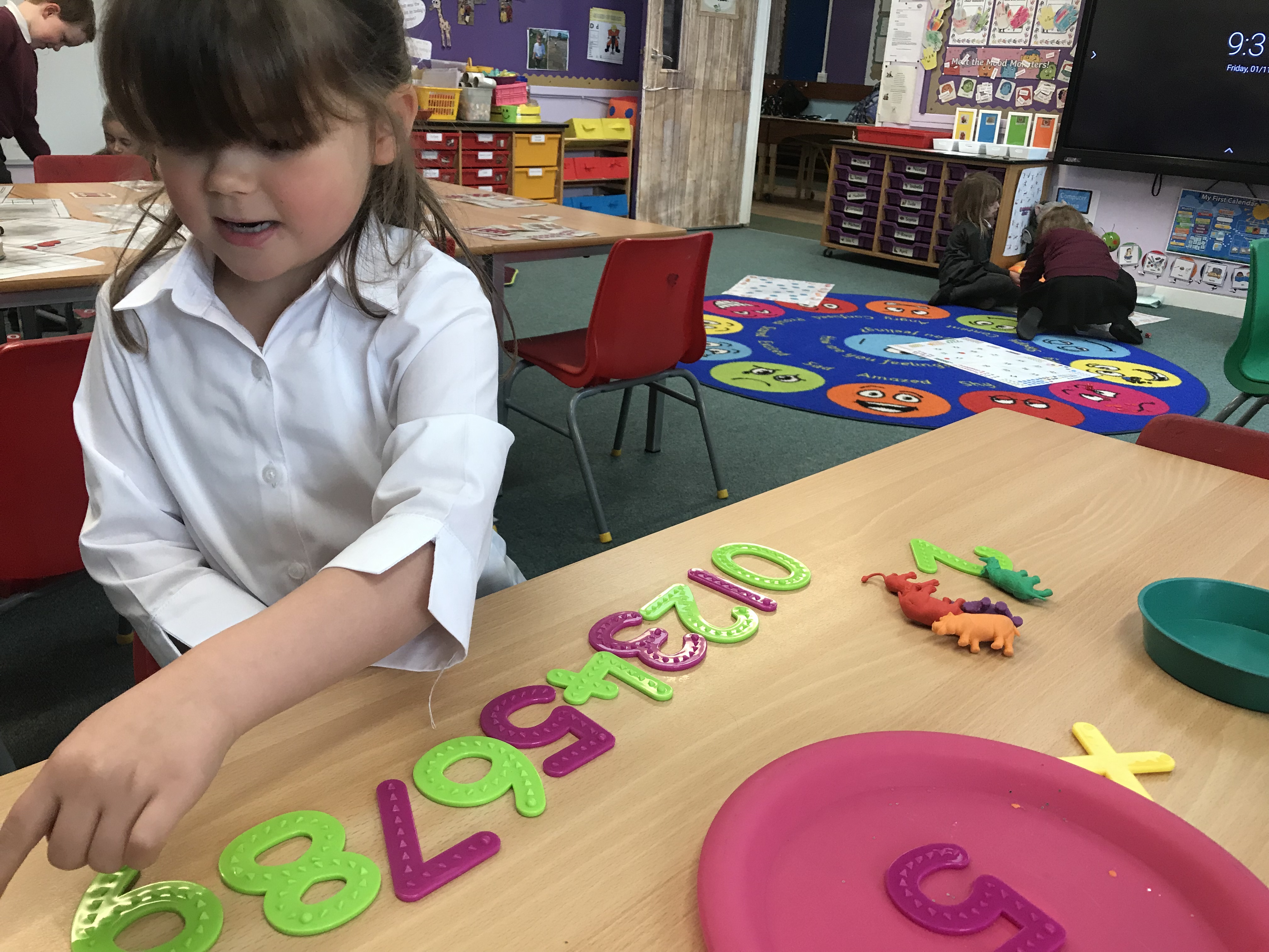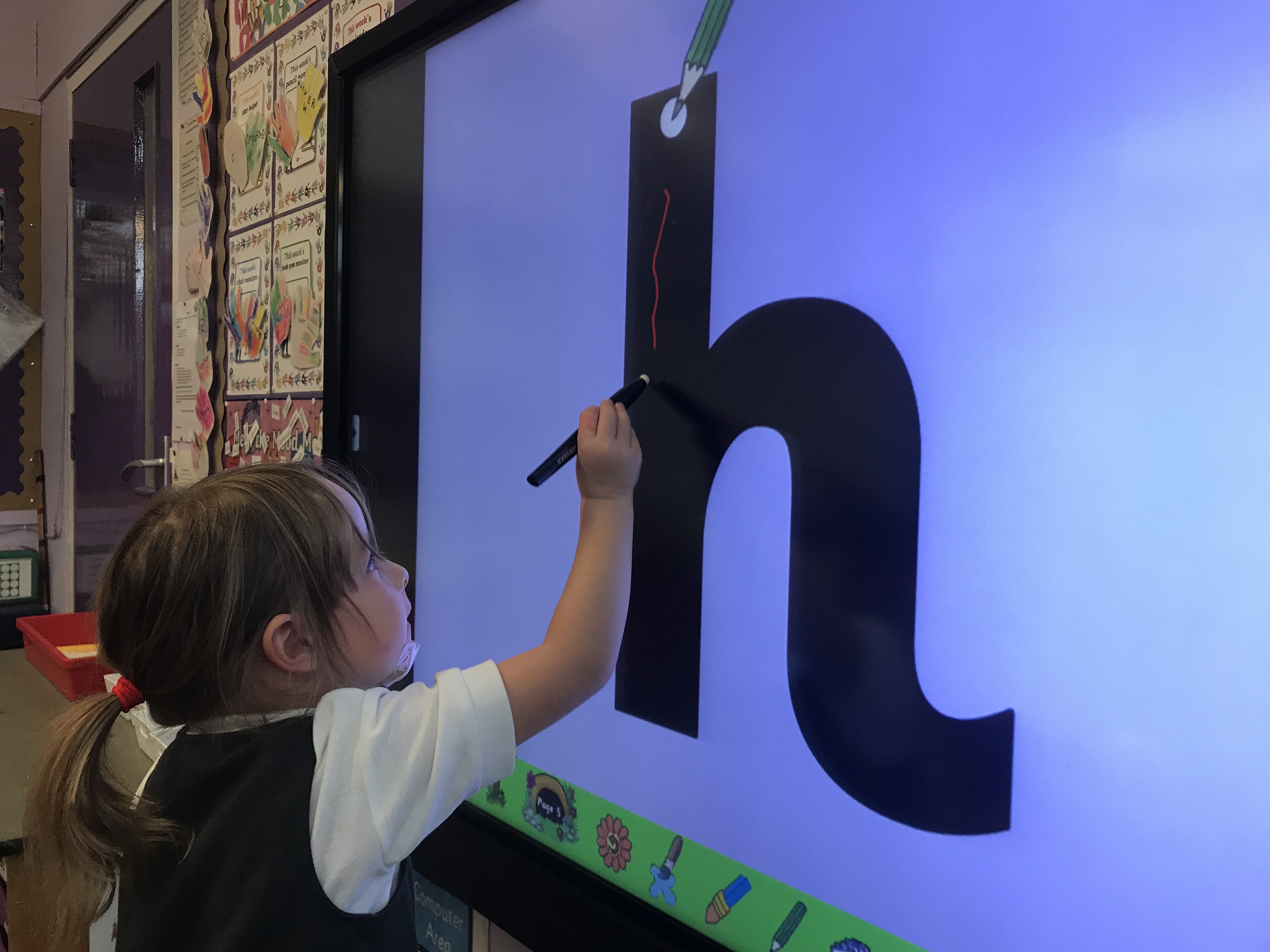Here we are doing some sensory activities and practising the formation of the sounds. We especially like writing on the smartboard!