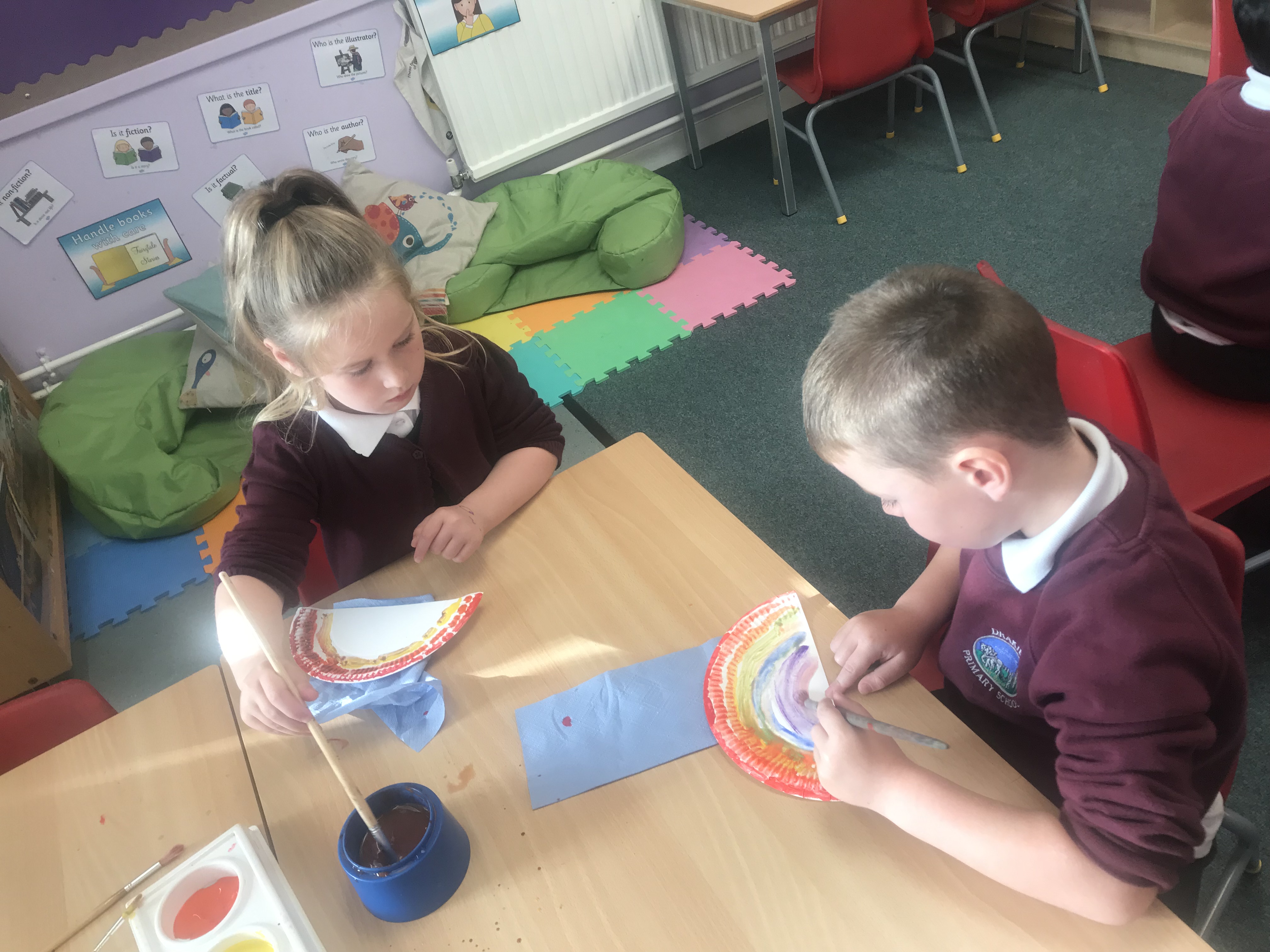 The sound r got us talking about rainbows and on Friday we talked about the different colours of the rainbow and made some of our own. I can’t wait to put these up on display, they will certainly brighten up our classroom.