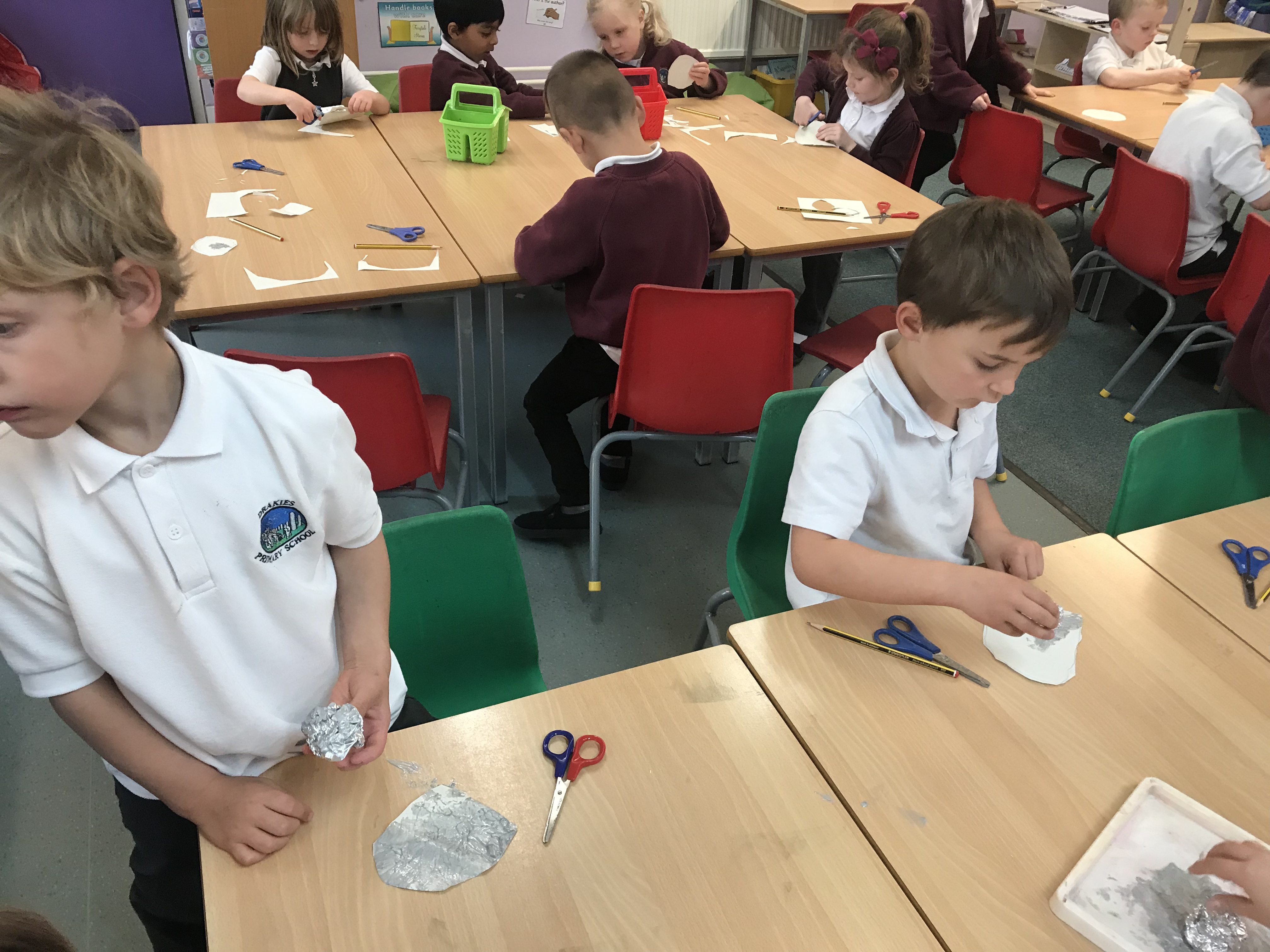 We did some ‘m’ art on Tuesday and made some moon pictures. We used tin foil and silver paint to create textured moons and then added some cut out stars to our moon night skies. We also discussed what the moon looks like and came up with some excellent describing words.