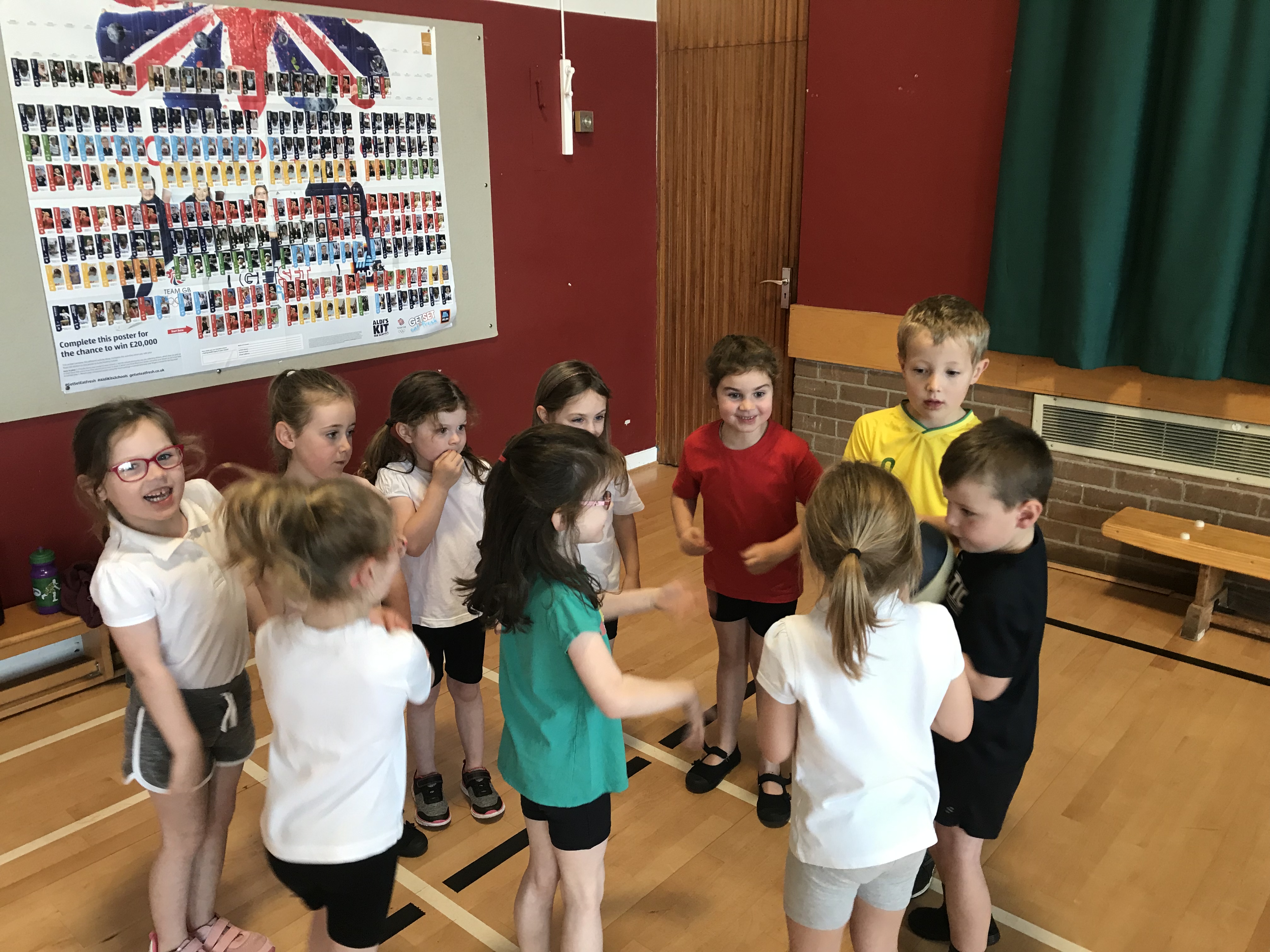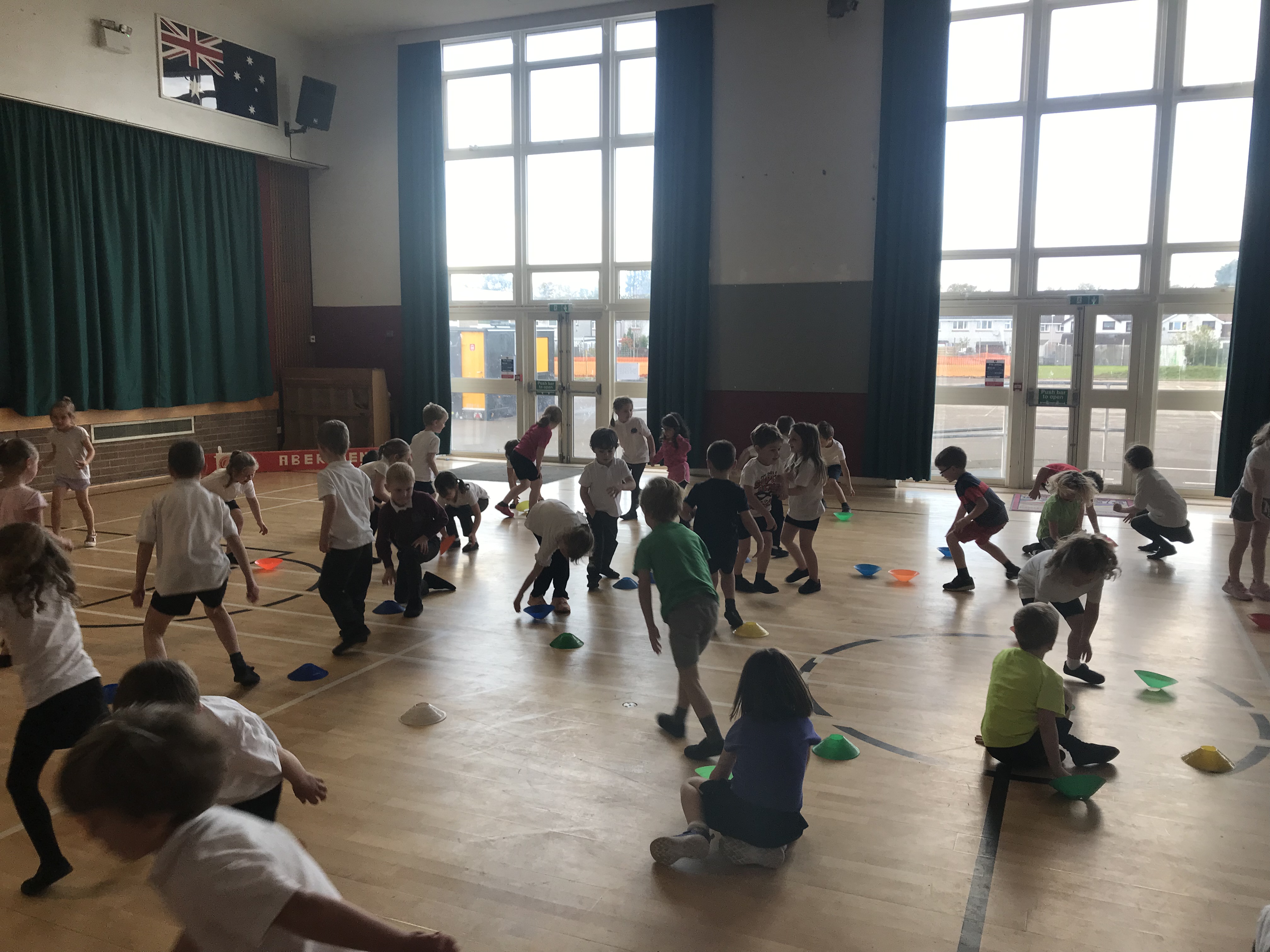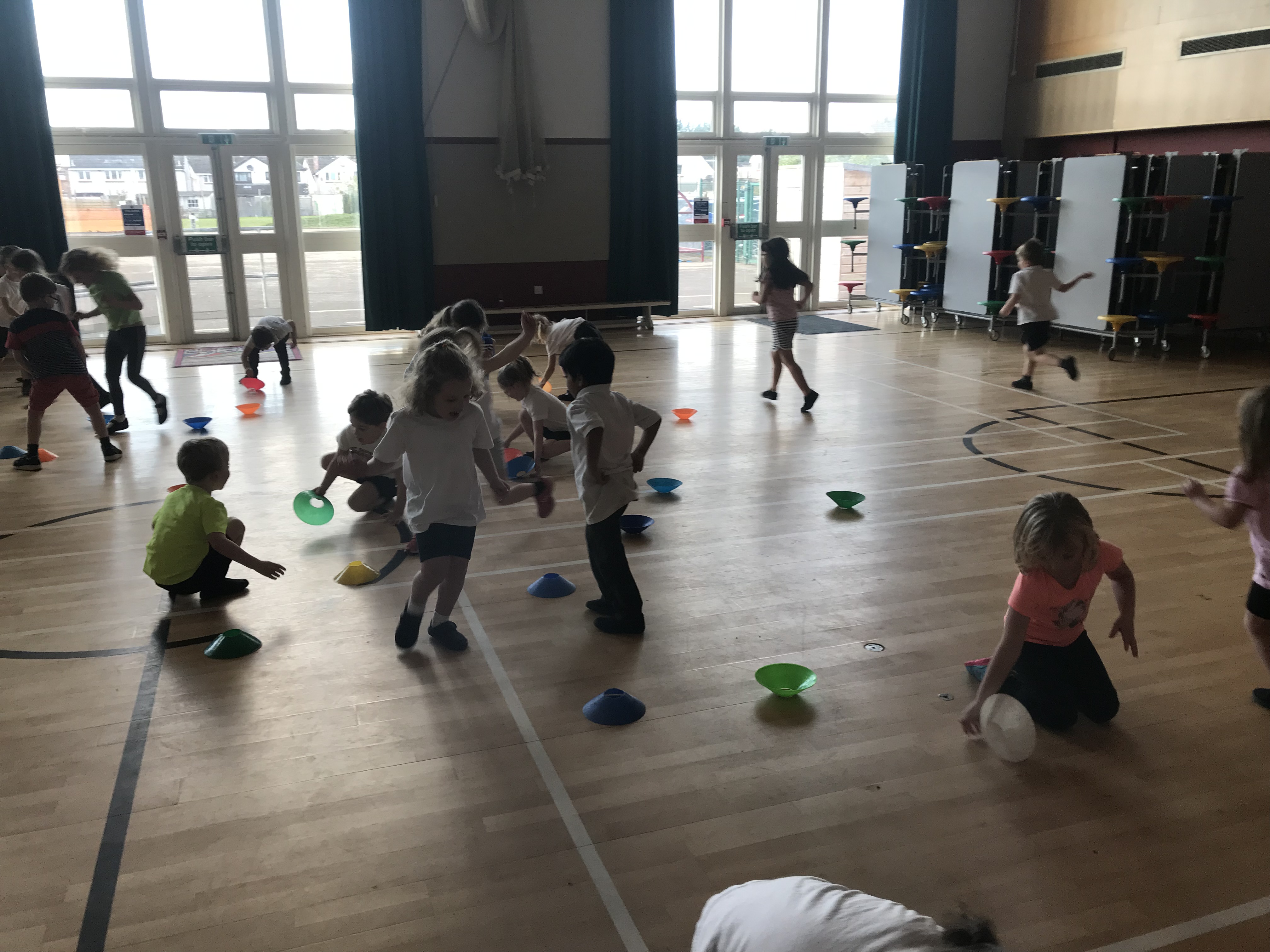 On Wednesday P1/2 joined us for gym. We warmed up with a game of dishes and domes. There was 50 children all playing one game so we had to really focus so we didn’t run into anyone!