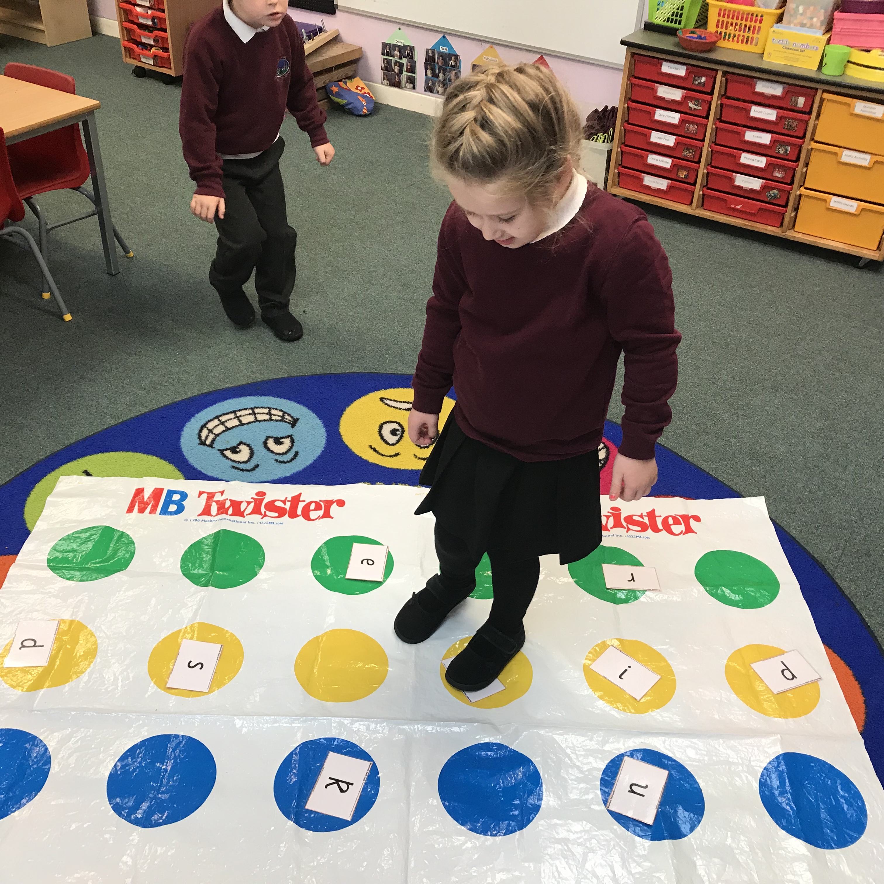 We played a familiar game ‘with a twist’ to help us with blending to read cvc words. 😀 This was lots of fun!