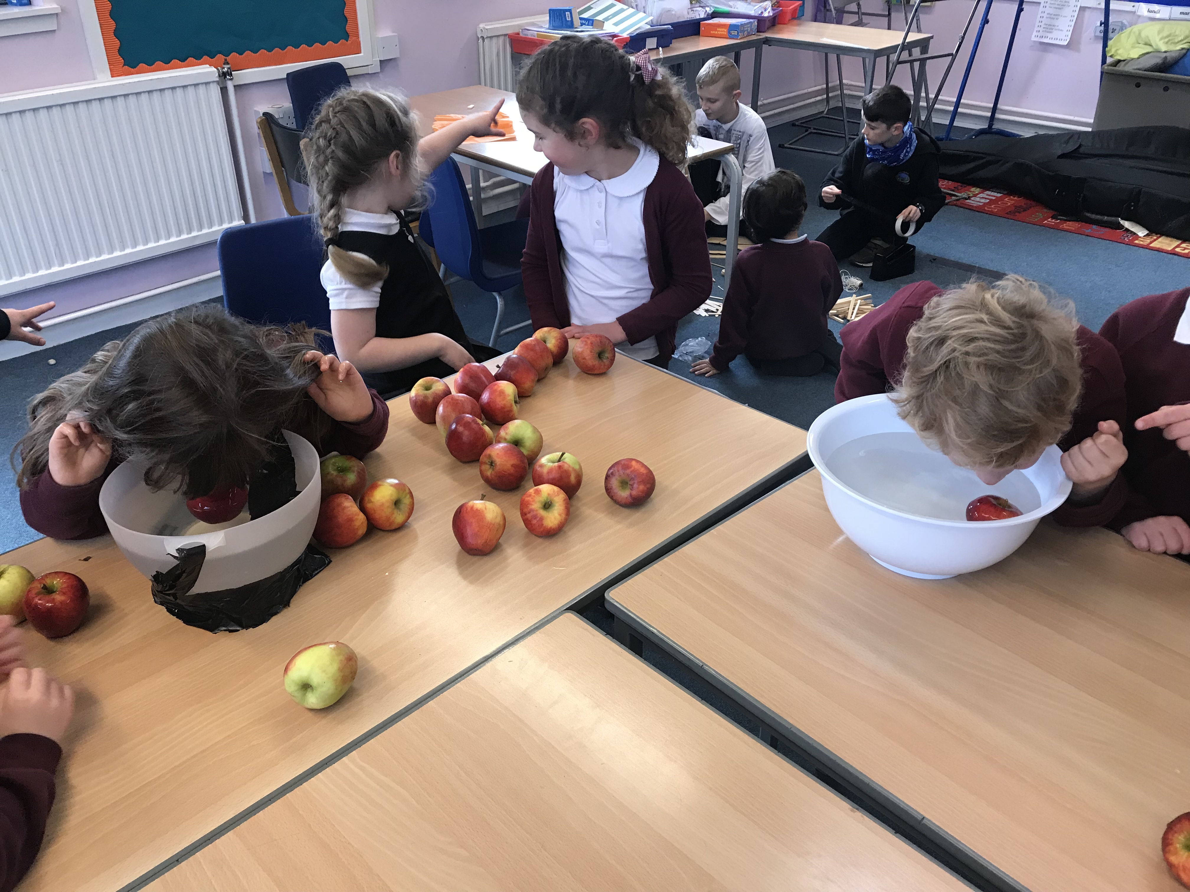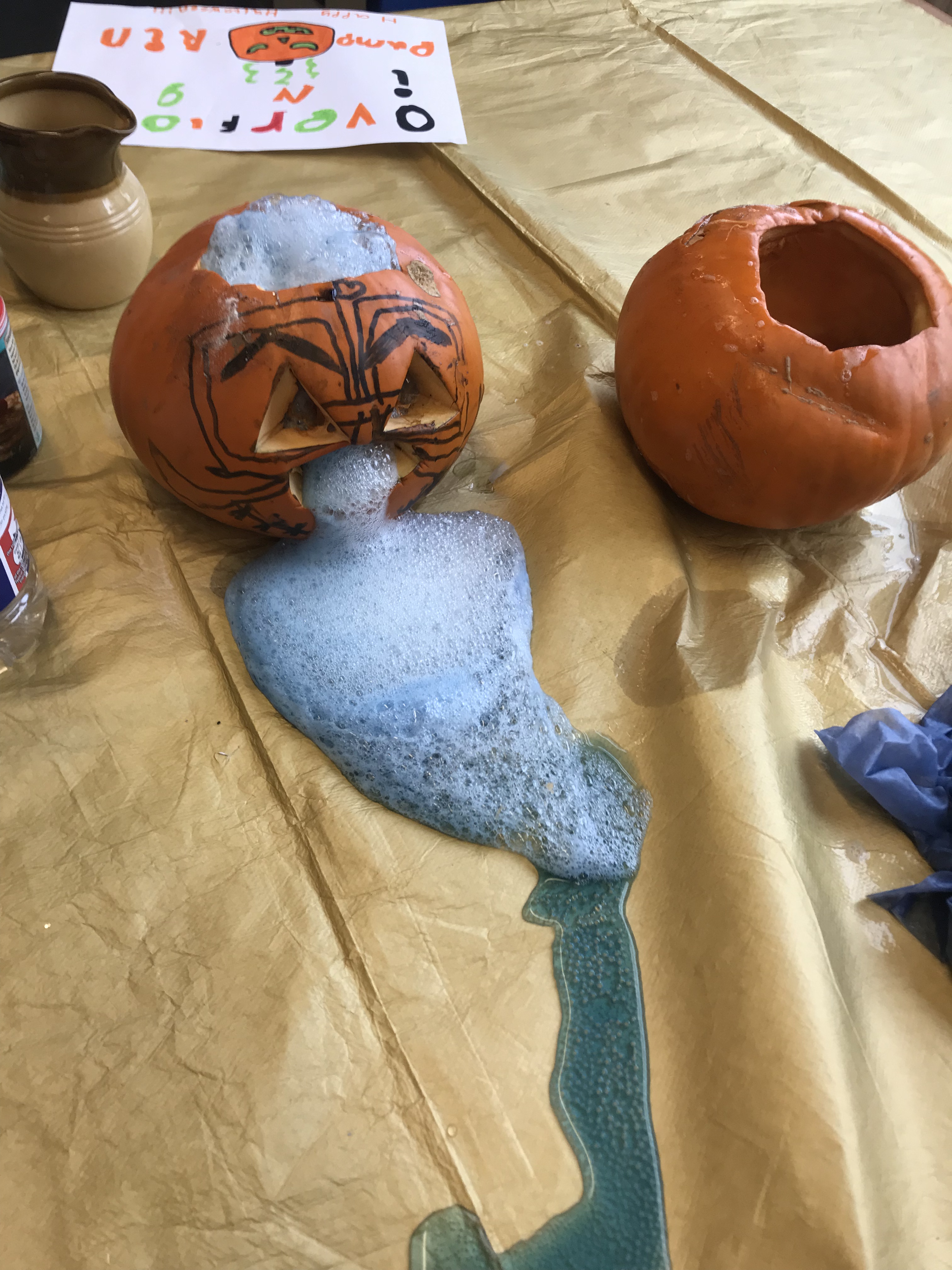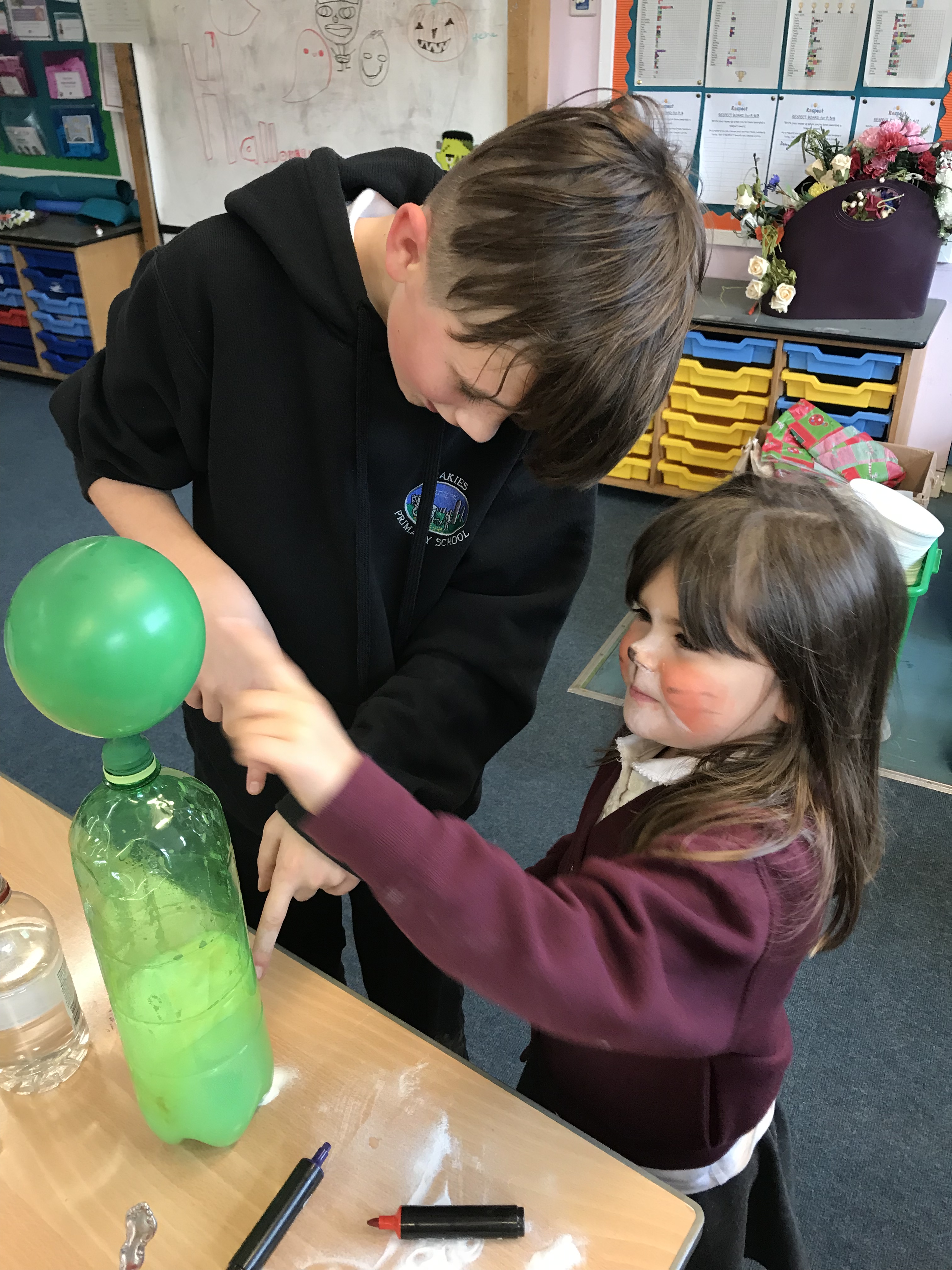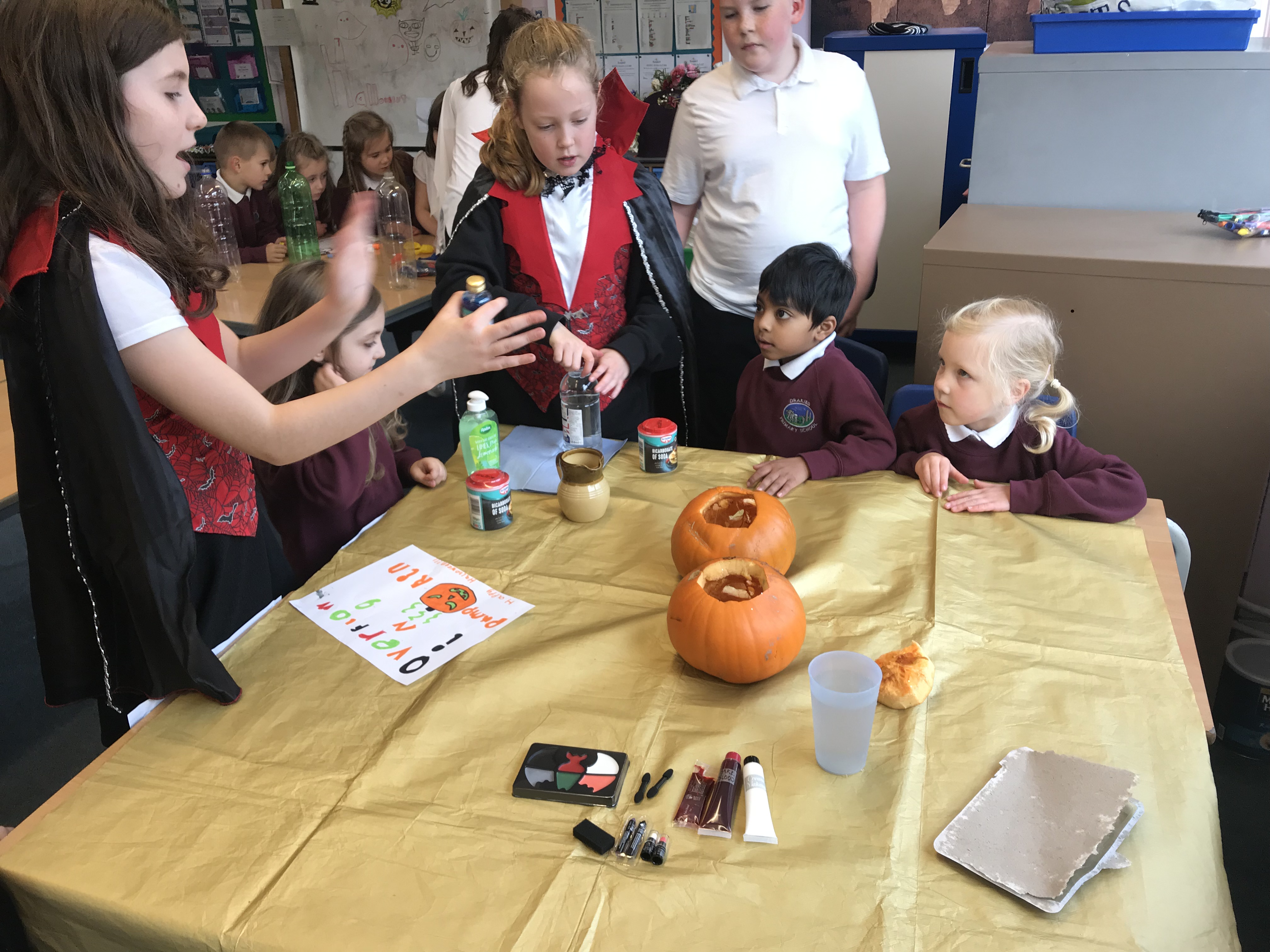 In the afternoon the P7s had arranged a spooktacular selection of STEM activities for us. Exploding pumpkins and growing monster heads using chemical reactions and bone bridge designing. We also enjoyed some bobbing for apples, colouring our own pumpkins and getting our faces painted!