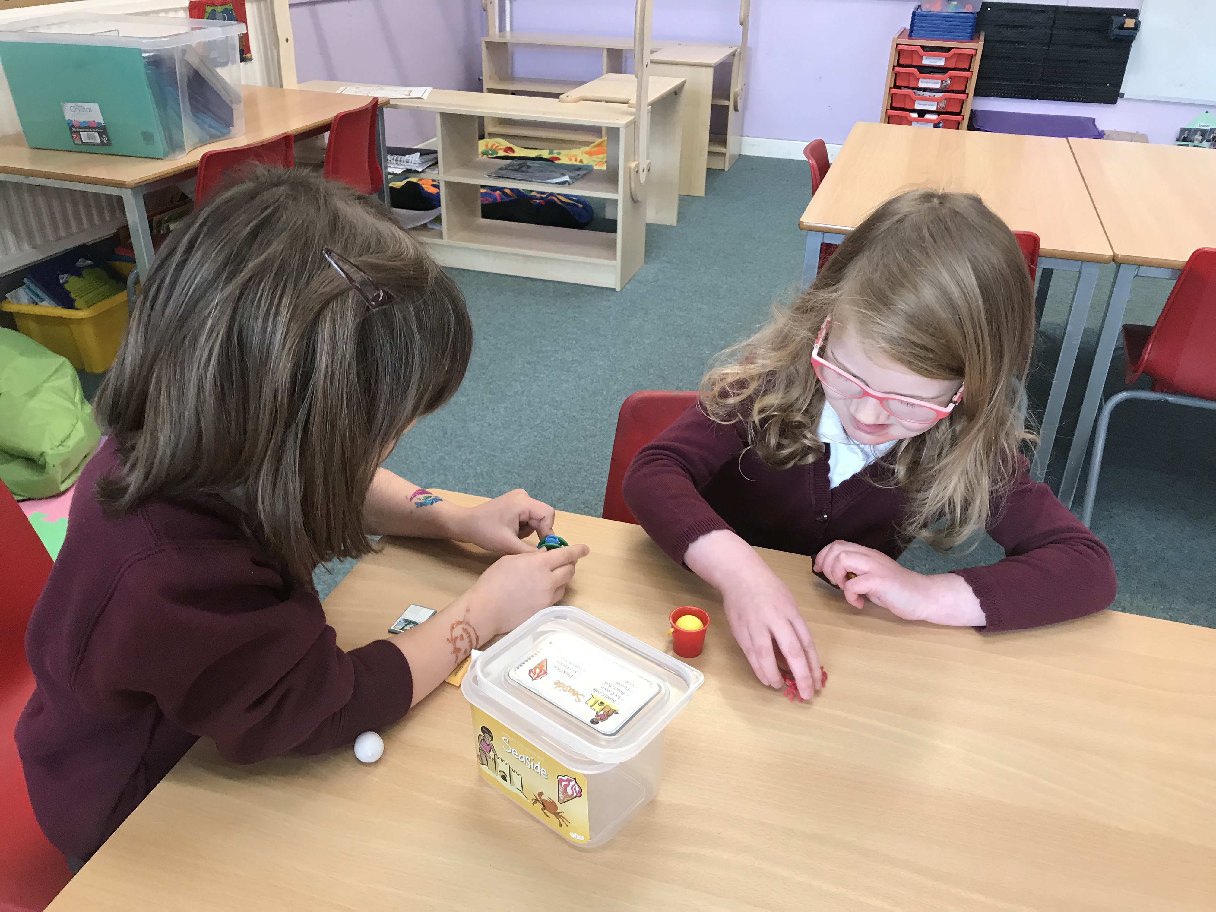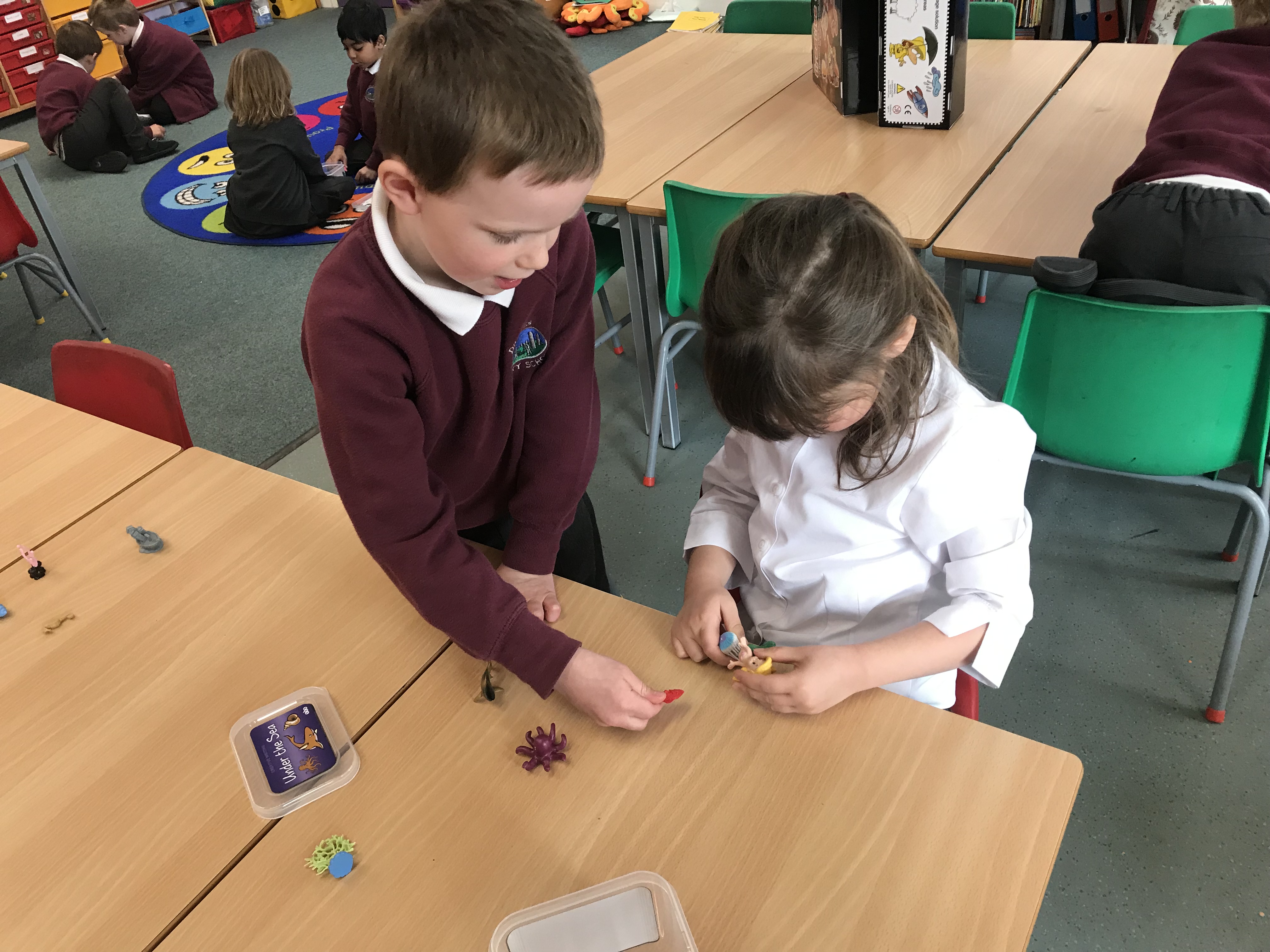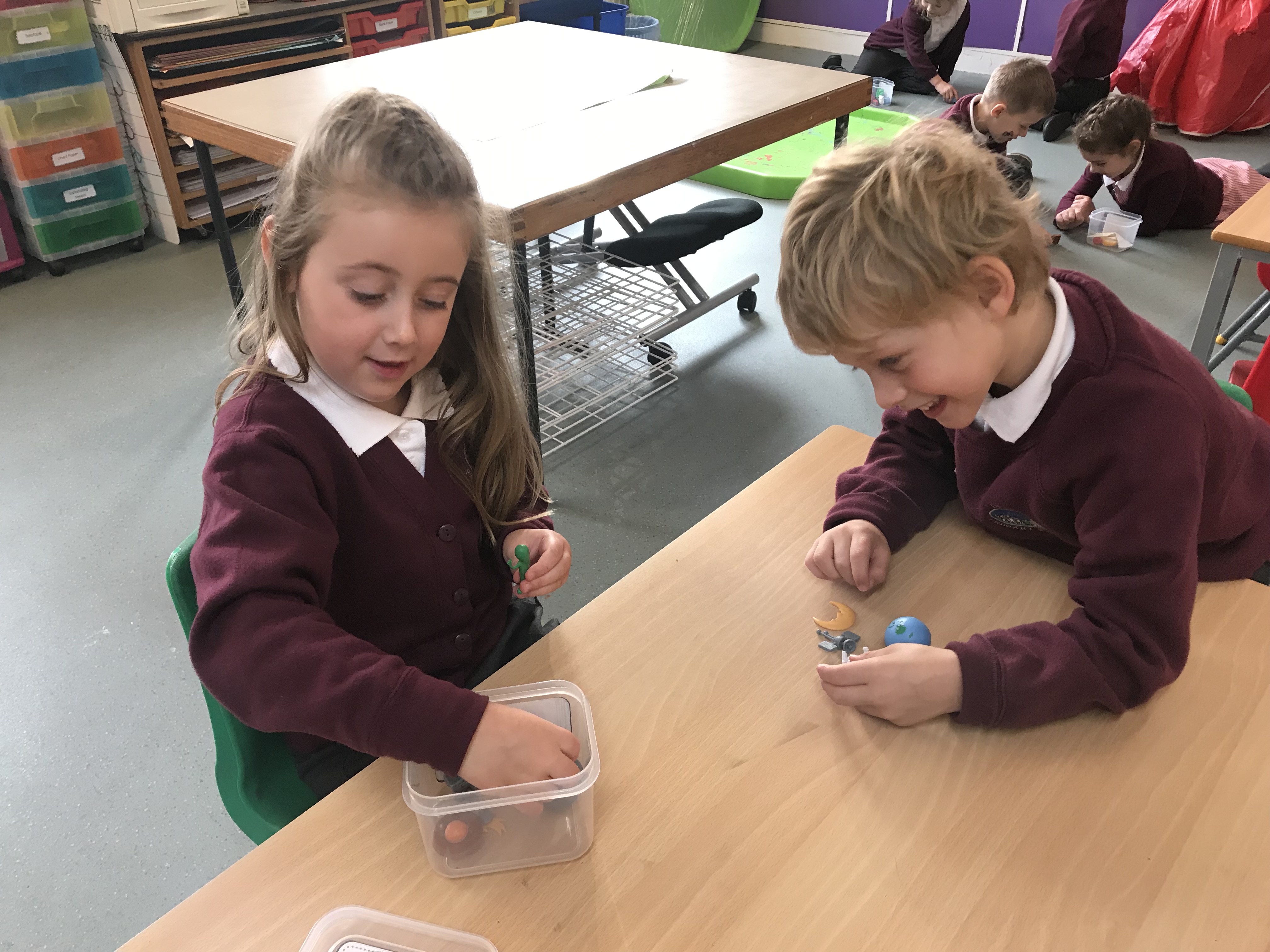 We also had a go at making up our own stories using creative story writing boxes. Each box has a number of different objects in it and we had to use these with a partner to create our own stories. We will revisit this and have a go at writing stories independently.